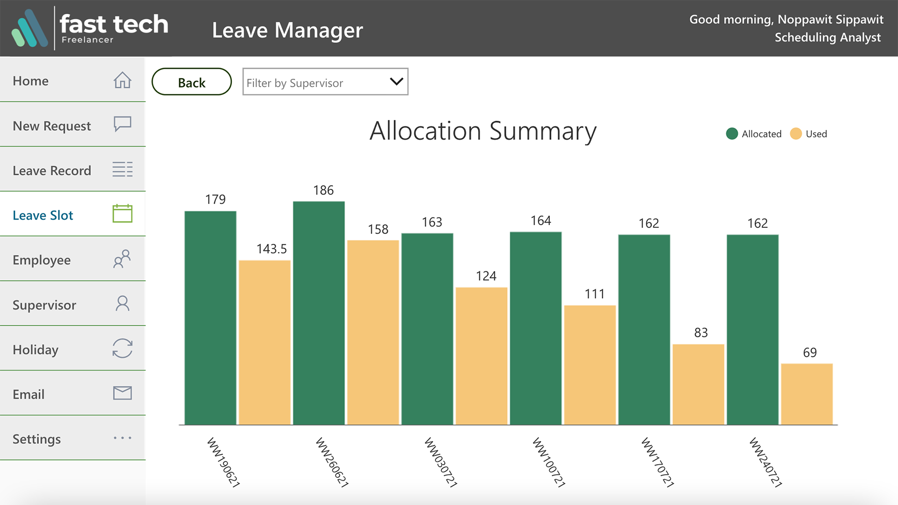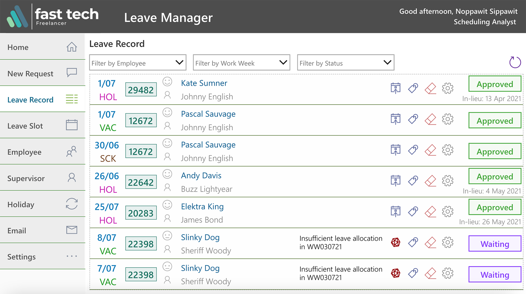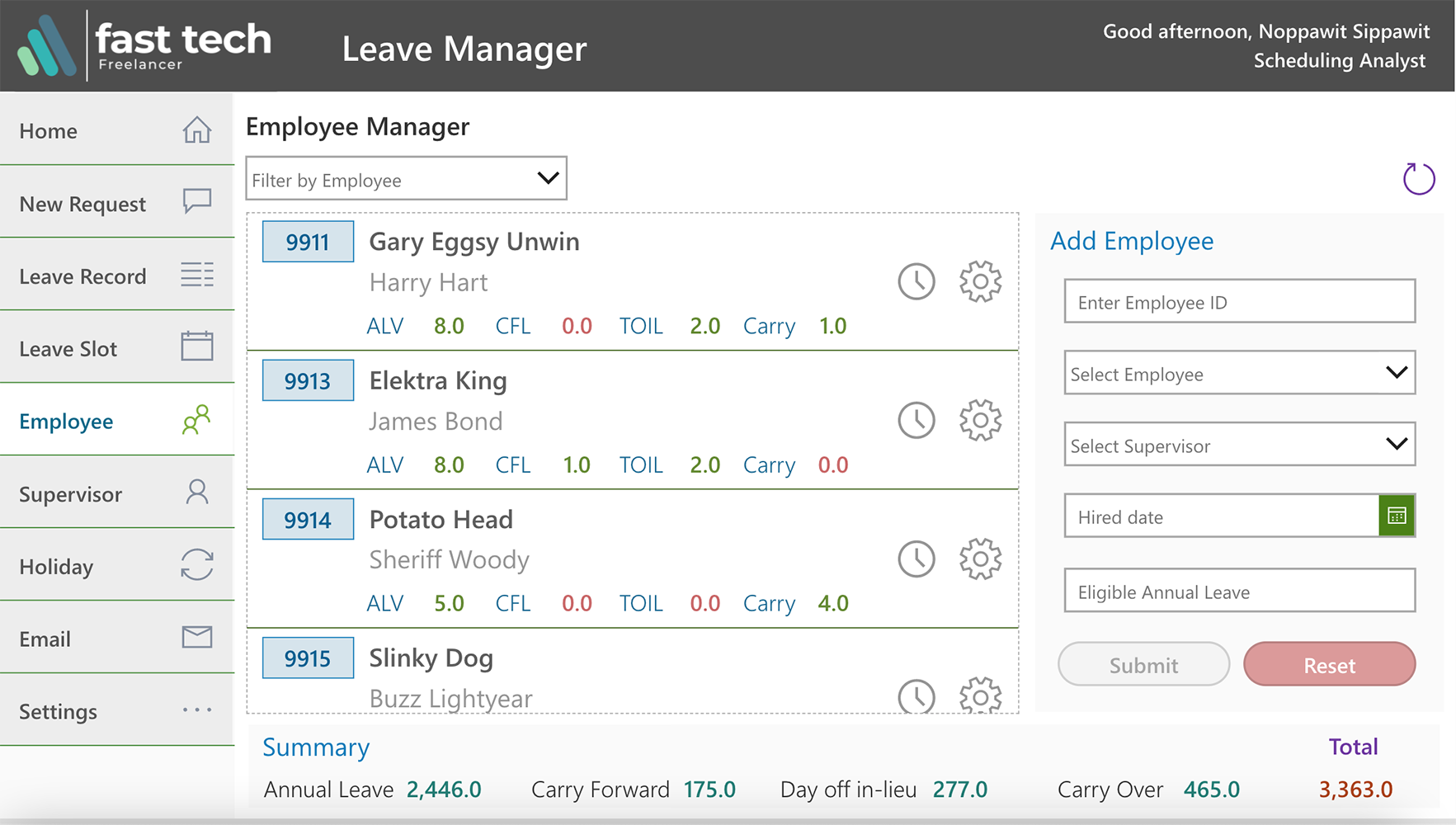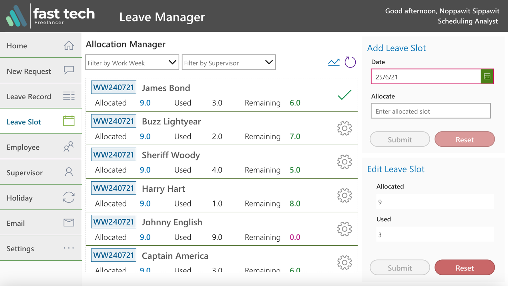 The application is created for managing leaves of 300+ shift staffs in an outsourced service provider company.